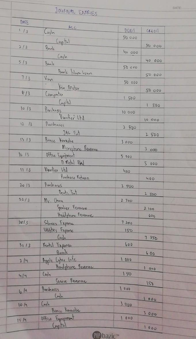 Solved Transaction 1 March 30 April 2021 Date Particulars Chegg Com